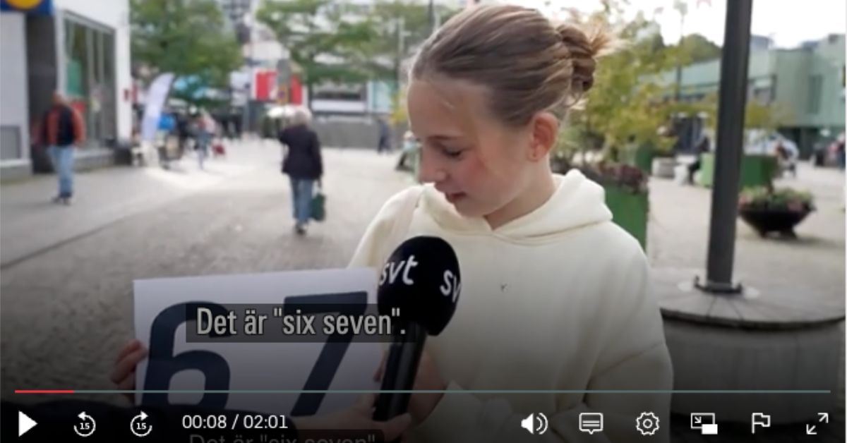 Filmklipp och artikel om fenomenet ”six seven”, Svt Nyheter (2 oktober, 2025). Här är inslaget: Varför pratar alla om ”six seven”?
